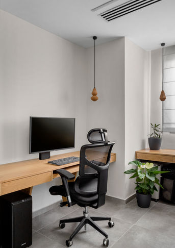 התהליך- ביטול ושבירה של חדרים סגורים ויצירת חללים פונקציונליים חדשים: פינת אוכל מרווחת, חדר עבודה גדול שמתמזג עם הסלון ושבירת המסדרון ליצירת חלל מרכזי זורם ומואר.